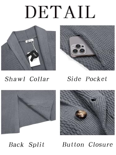 • 【Design】 These toasty chunky cardigan sweaters are feature with open front with one button, shawl collar, textured knit, long sleeve, two side pockets, regular fit and long length. Show man elegant charm and trendy look