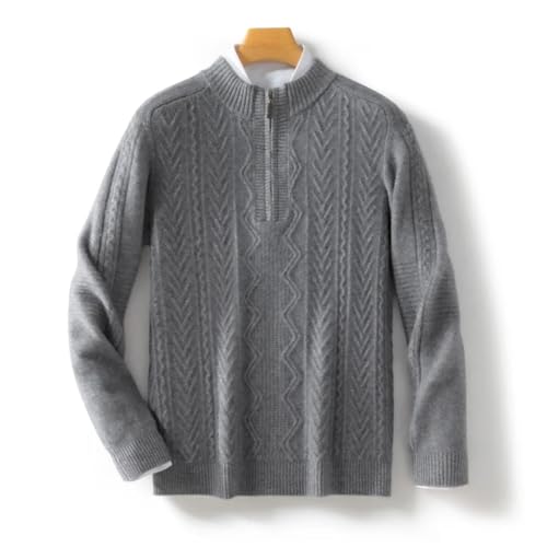 Men Mock Neck Zipper Pullover Cashmere Sweater Long Sleeve Jumper Merino Wool Knitwear Thick Tops Gray XL