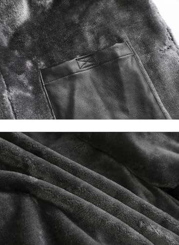 HOOD CREW Mens Leather Jacket Fashion Leather Trench Coat 3/4 Length Casual Winter Faux Fur Coat 5