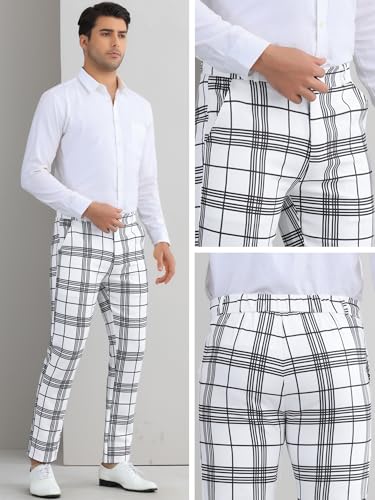 Lars Amadeus Plaid Dress Pants for Men's Flat Front Chino Contrasting Colors Business Tartan Trousers 4