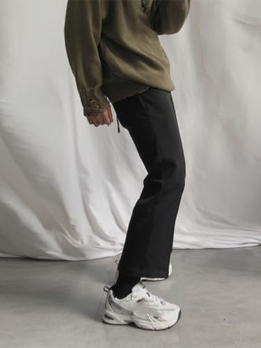 Men's Black Casual Ankle Pants Straight Relaxed Wide Leg Dress Trousers Pants for Men