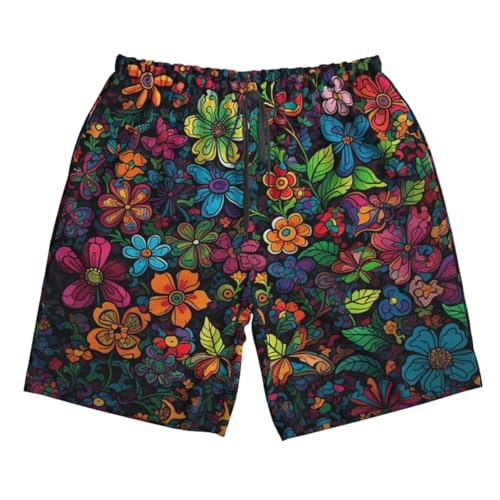 • Quick-Drying Beach Shorts: Cartoon Flower Men's casual shorts are made of stretch fabric, breathable material allows your body to stay dry and snug. The exclusive fabric keeps you cool even on hot days. You won't feel tight or insecure in these 2 in 1 swimming trunks.