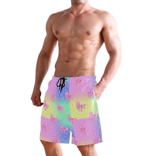 sizzling ! expedient Dry Pink Bows Men's Swimming Shorts Swim Trunks with Mesh Lining Beach Wear - S