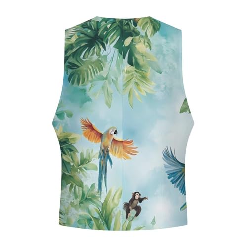 Vintage Jungle Parrots Monkey Men's Formal Suit Vest for Business Formal Or Casual Dress Waistcoat Wedding