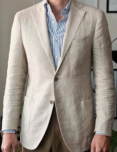 Fabric type: Linen and Cotton BlendCare instructions: Dry Clean OnlyOrigin: Imported【You Can Get】 Includes 1 mens linen suit jacket that transitions effortlessly from casual to formal. Wear it over a T-shirt for a relaxed weekend look or pair with a dress shirt for a refined style.【Premium Fabric】 Crafted from quality linen blend with excellent breathability, skin-friendly softness, and moisture-absorbing properties. Lightweight and comfortable to wear all day, while maintaining a polished appearance.【Modern Design】 The mens suit features notched lapels, slim fit cut, two-button closure, single chest pocket, and two patch pockets at the sides. Solid color and clean lines enhance your profile, giving a sharp yet approachable look.【For Every Occasion】 The men blazer is ideal for graduations, weddings, parties, banquets, beach events, dates, meetings, nightclubs, business settings, performances, proms, groomsmen attire, and even fashionable everyday wear.【Care & Fit Guide】 For the best fit, please refer to our size chart before ordering. Dry clean recommended to preserve fabric quality. Do not bleach. Designed for a flattering fit that complements various body shapes. Perfect for everyday use. top-grade materials and excellent craftsmanship ensure long-lasting durability.