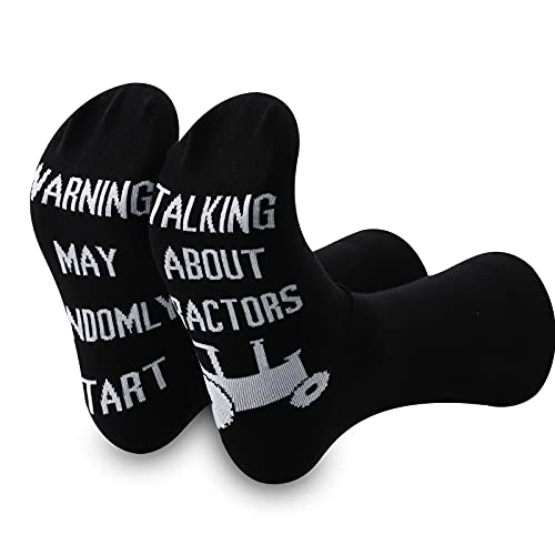 sizzling ! GJTIM 2PAIRS Farmer Tractor humour slogan Warning May Randomly Start Talking About Tractors Funny Farming Socks