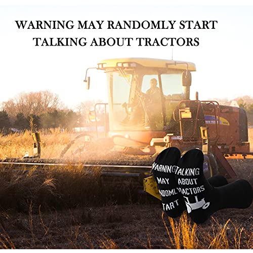GJTIM 2PAIRS Farmer Tractor humour slogan Warning May Randomly Start Talking About Tractors Funny Farming Socks 3
