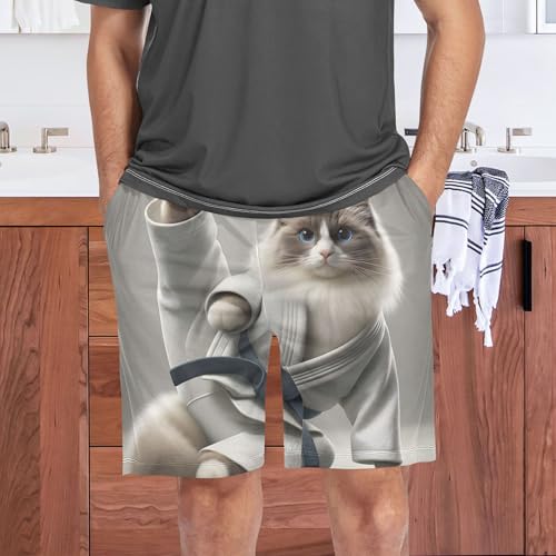 Colorful Pajama Mens Shorts Athletic Pj Sleep Shorts Funny velvety Comfy Kung Fu Cat Ragdoll S