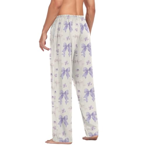 Men's Purple Bows Pajama Pants with Elastic Waistband | velvety Lounge Sleepwear | Breathable Sleep Pants for Home(313)