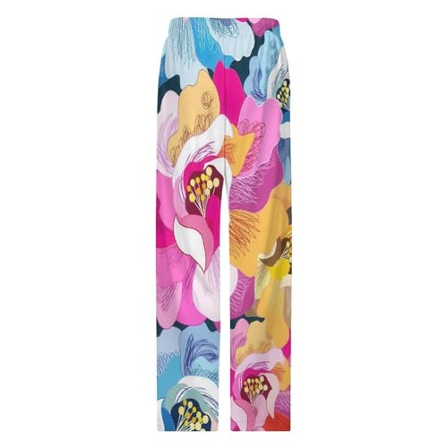 Pajama Pants for Mens Women contemporary Unisex Home Sleep Bottoms Sleepwear Gift Vibrant Floral